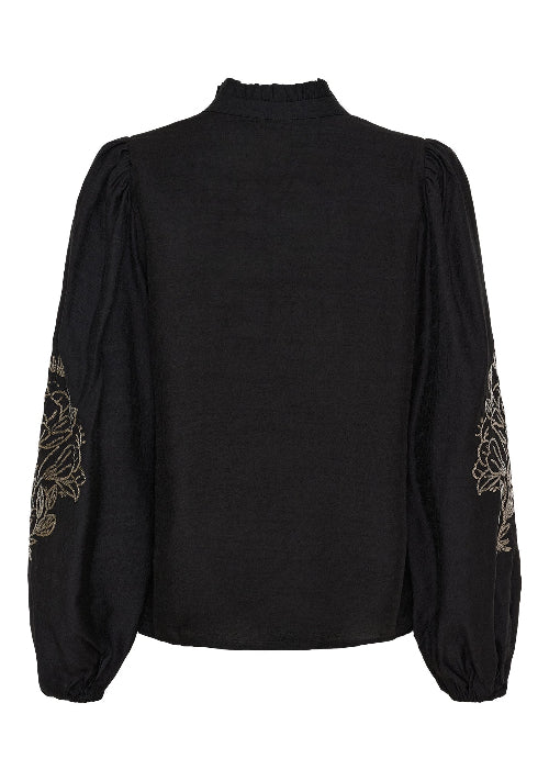 Lockere Bluse in schwarz mit V-Ausschnitt  und Flowerprint auf den Ärmeln, Wunderwerk Oldenburg
