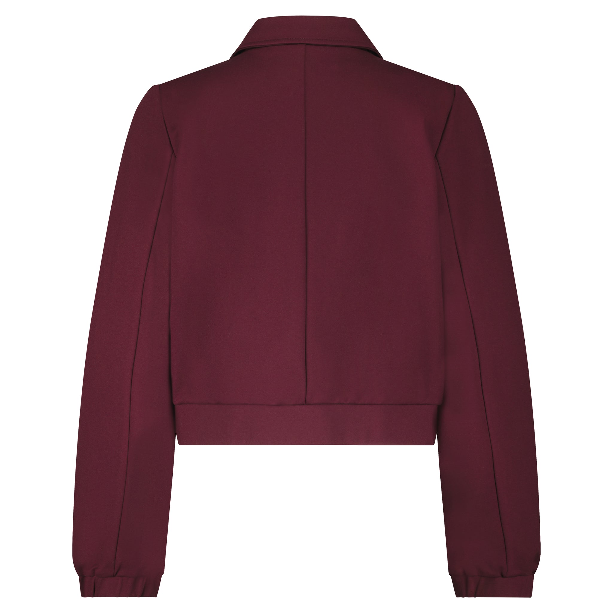 Diese kurze Jacke überzeugt mit klaren Linien, aufgesetzten Brusttaschen und edlen Druckknöpfen. Der satte Bordeaux-Ton verleiht dem Look Eleganz und Vielseitigkeit.