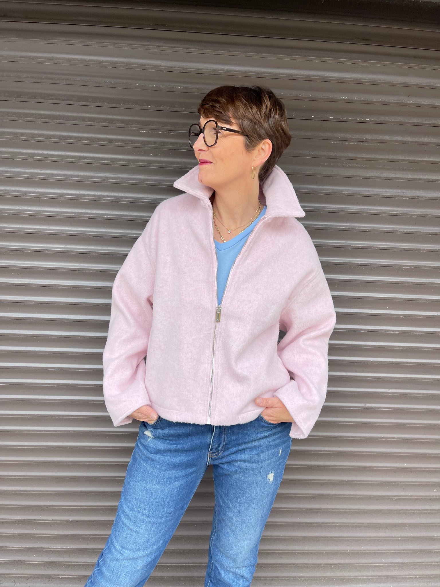 Der Hemdblusenkragen verleiht ihr eine klassische Note, während der Frontreißverschluss und seitliche Eingrifftaschenfür Funktionalität und Alltagstauglichkeit sorgen.