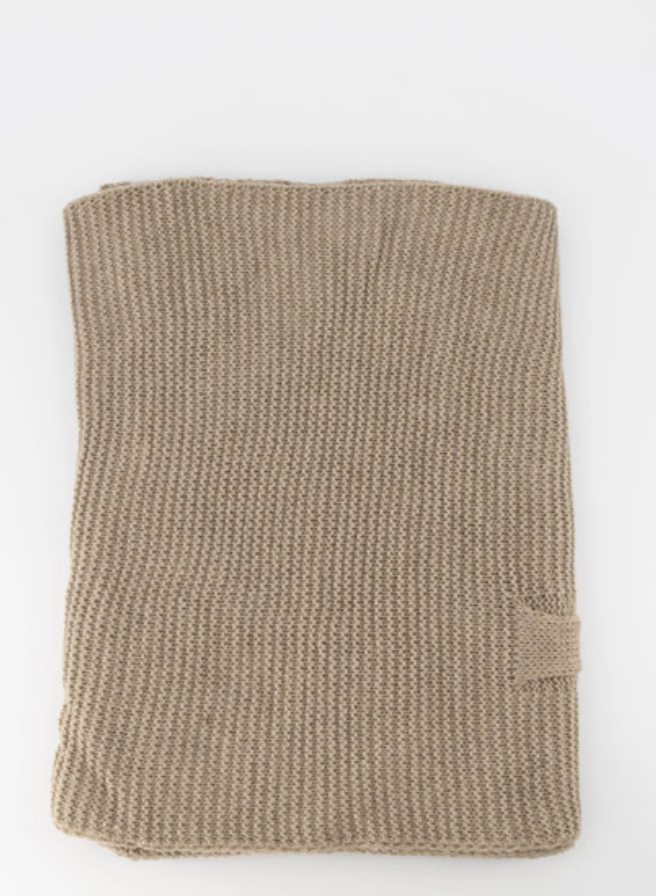Durch den lockeren Strick und die praktische Schlaufe lässt er sich unkompliziert überziehen und sorgt sofort für Wärme und Gemütlichkeit.