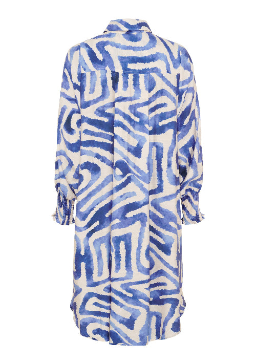 Das Ane Printed Kleid von Isay verbindet einen zeitlosen Hemdblusen-Stil mit einem modernen Print und einer weich fallenden Silhouette.