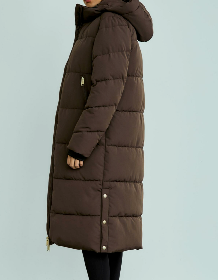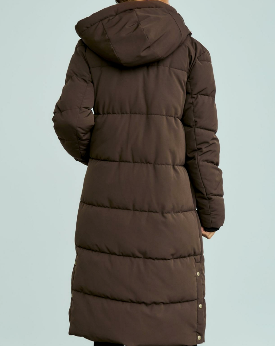 Bereit für kalte Tage: Der lange Glorian Puffermantel von WithBlack vereint Funktion und Stil.