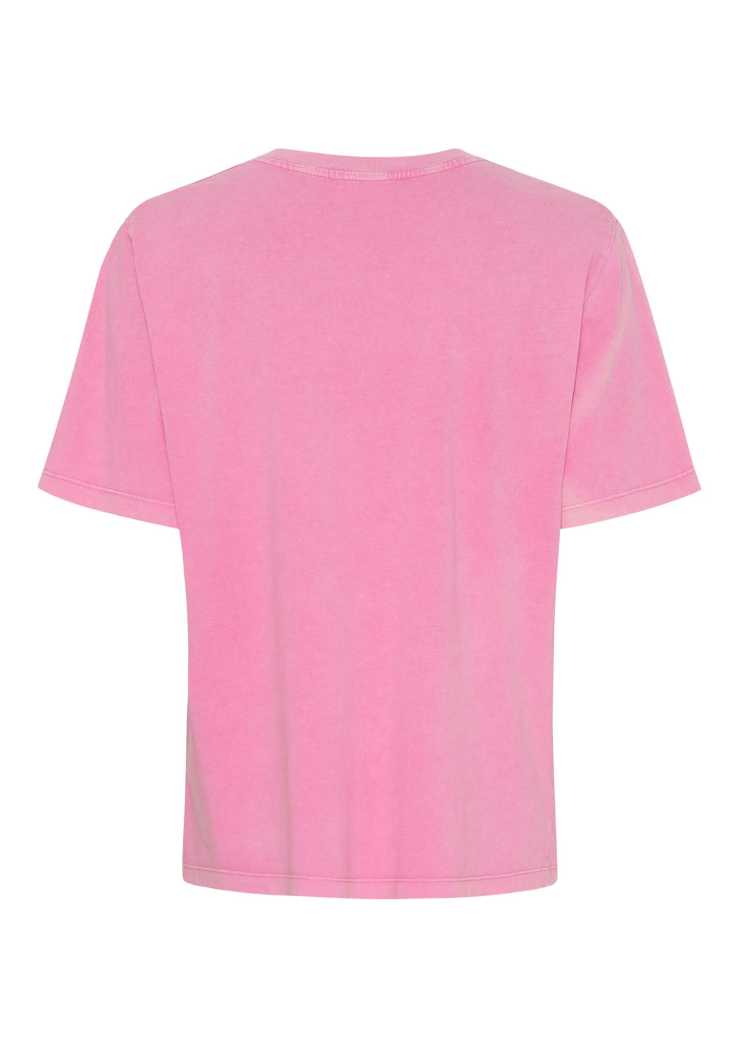 Der Print auf der Vorderseite, veredelt mit feinen Strasssteinen, bringt einen dezenten Schimmer ins Spiel und verleiht dem klassischen Rundhalsdesign eine moderne, feminine Note. Die lockere Passform sorgt für ein angenehmes Tragegefühl und macht das T-Shirt zu einem vielseitigen Begleiter im Alltag.