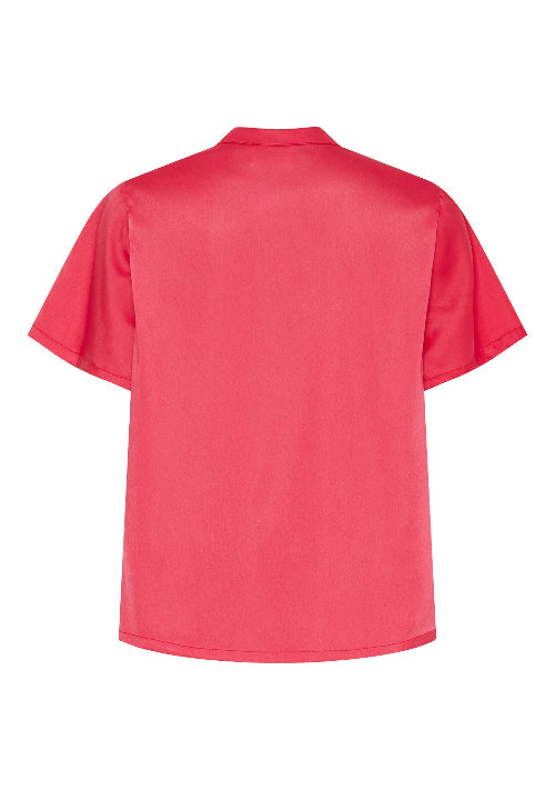 Der glatte Stoff mit dezentem Satinschimmer sorgt für ein feines Spiel der Oberfläche und fällt weich am Körper entlang. Die lockere Passform bietet hohen Tragekomfort, ohne an Form zu verlieren, angenehm von morgens bis abends.