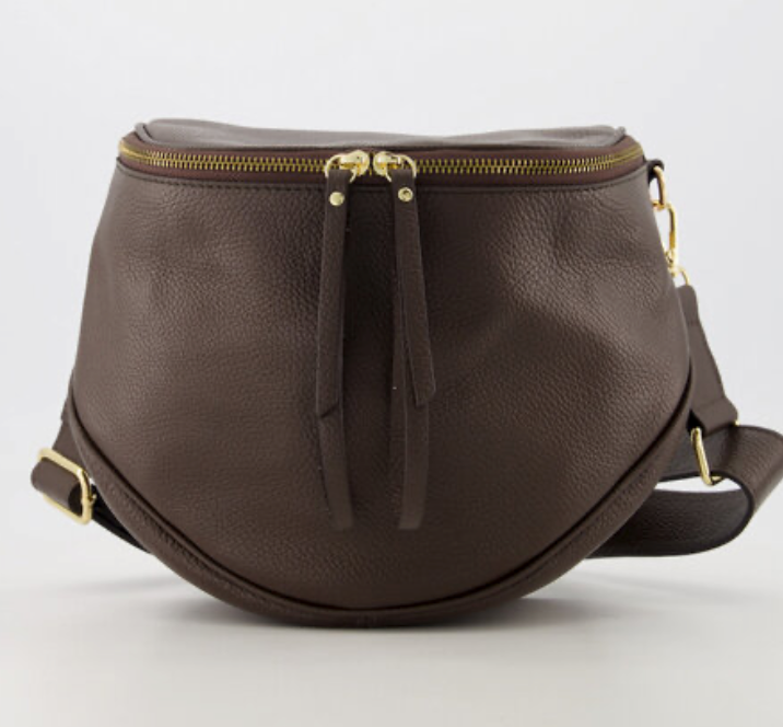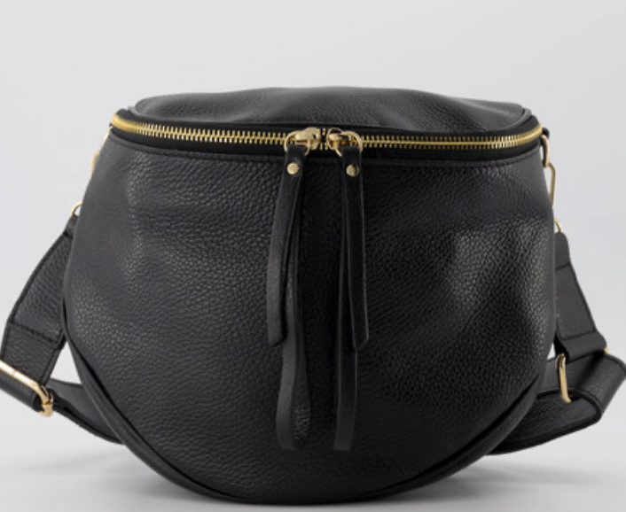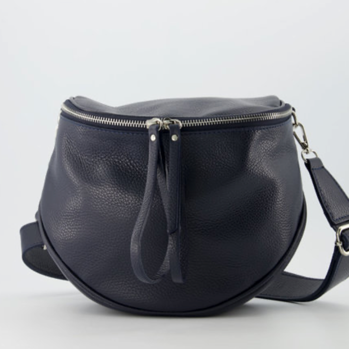 Das Hauptfach bietet ein separates Innenfach mit Reißverschluss und sorgt so für eine übersichtliche Aufteilung. Der breite, längenverstellbare Tragegurt ermöglicht flexibles Styling, ob als Crossbody, über der Schulter oder klassisch an der Hüfte getragen. Goldfarbene Beschläge setzen einen dezenten Akzent und runden das Design ab.