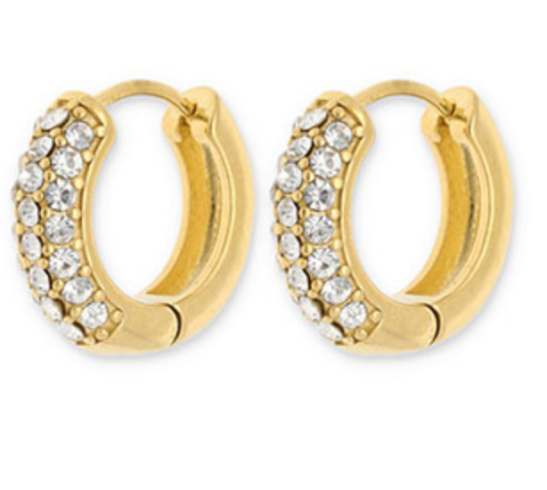 Klassische Creolen mit funkelnden Strasssteinen, die jedem Look eine elegante Note verleihen. Die glatte Oberfläche und das schlichte Design machen sie zum vielseitigen Allrounder, perfekt für Alltag und besondere Anlässe.
