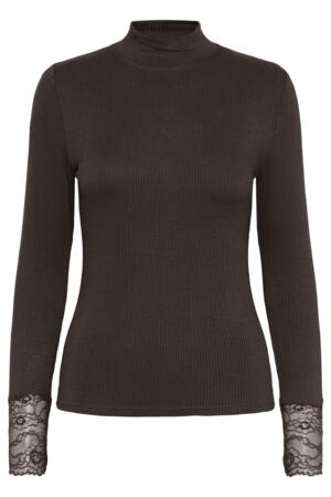 • Details: Rollkragen, lange Ärmel mit Spitze am Abschluss