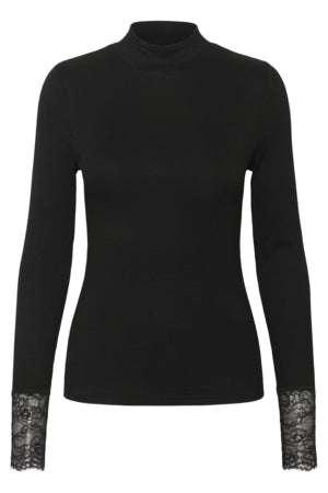 Der Slim Fit betont die Silhouette, während der lange Ärmel mit Spitzenabschluss dem schlichten Design einen raffinierten Akzent verleiht. Der Rollkragen sorgt für eine stilvolle, moderne Optik und macht das Shirt vielseitig kombinierbar.