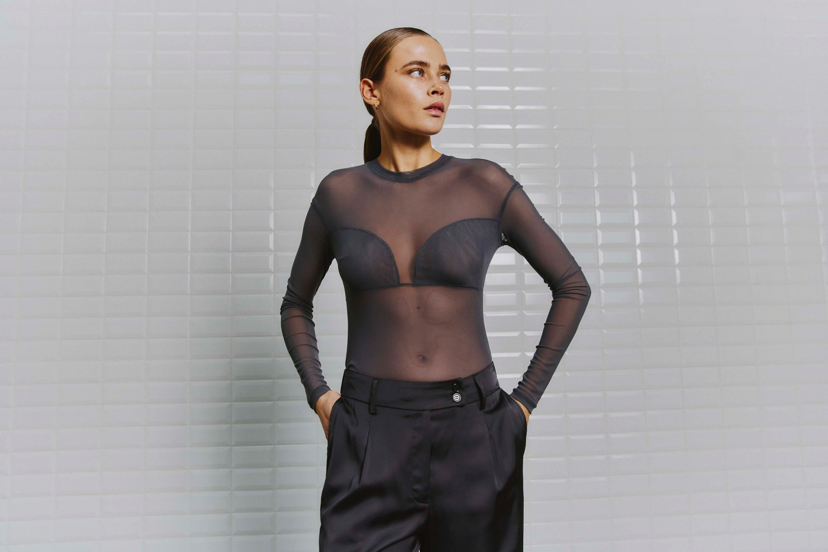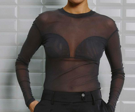 Leichtes Asta Mesh Shirt von WITHBLACK mit transparentem Design und einer zusätzlichen Schicht im Brustbereich für dezente Blickdichte.