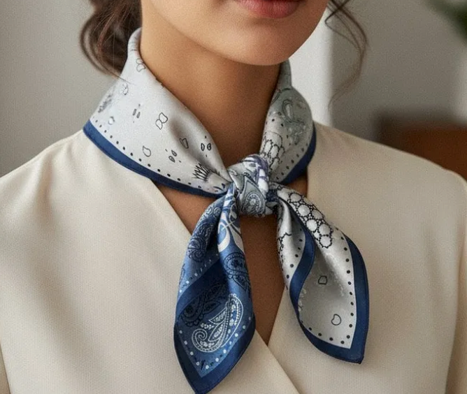 Dieses quadratische Tuch mit klassischem Muster verleiht jedem Look eine moderne Note. Das leichte Material sorgt für angenehmen Tragekomfort und vielseitige Stylingmöglichkeiten,  ob lässig um den Hals, als Haarband oder als Akzent an der Tasche. Ein elegantes Accessoire für jeden Anlass.
